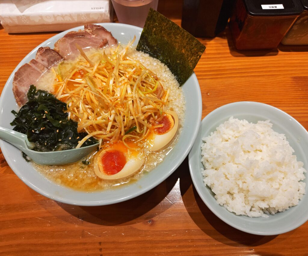 ねぎラーメン(950円)+味付玉子(150円)+中ライス(200円)
