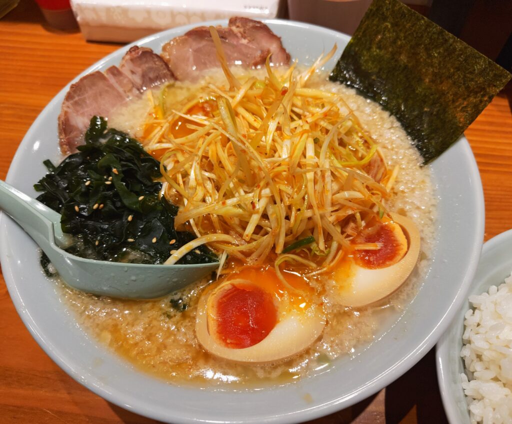 ねぎラーメン(950円)+味付玉子(150円)+中ライス(200円)